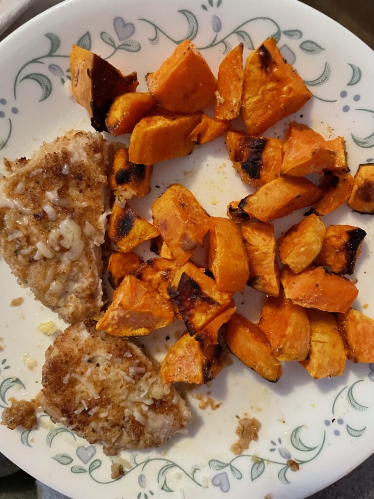 For my last picture, there was also green beans, however my husband stole them all because he decidedly does not like yams.
